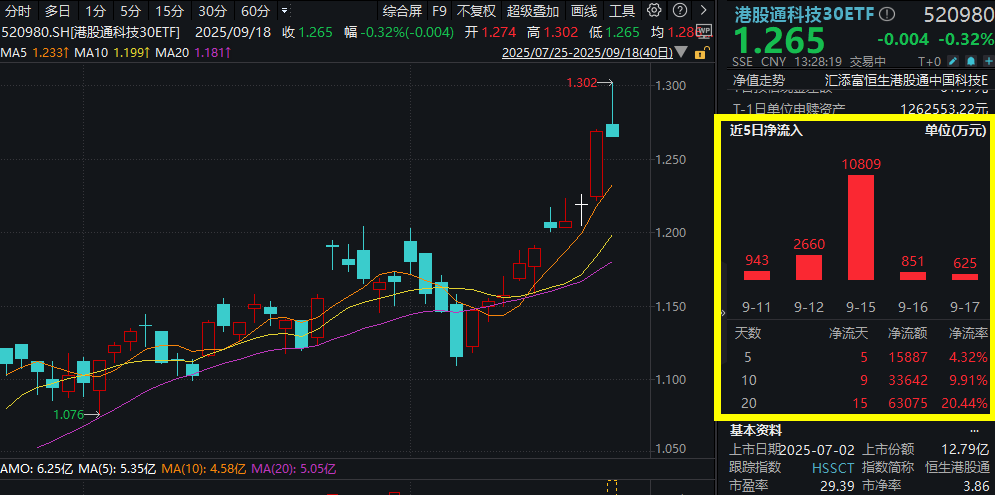 一键布局港股科技,认准更“纯”科技属性的港股通科技30ETF(520980)!港股通科技30ETF(520980)近20日累计吸金超6亿元,资金汹涌布局中国顶尖科技资产!