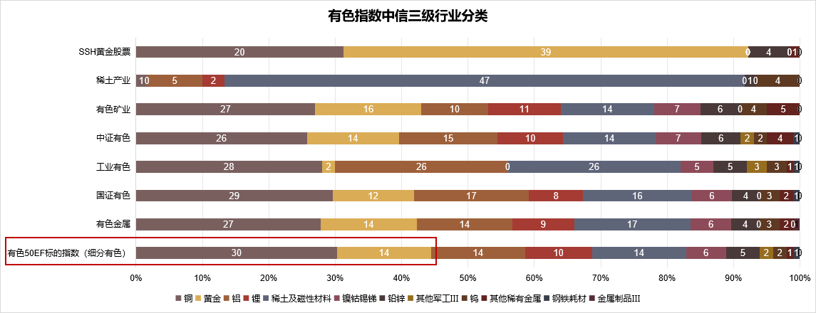 数据显示,有色50ETF(159652)标的指数全面涵盖金、铜、稀土等金属板块,根据中信三级行业分布,其“含铜量”达31%,“金铜含量”领先全市场同类指数!
